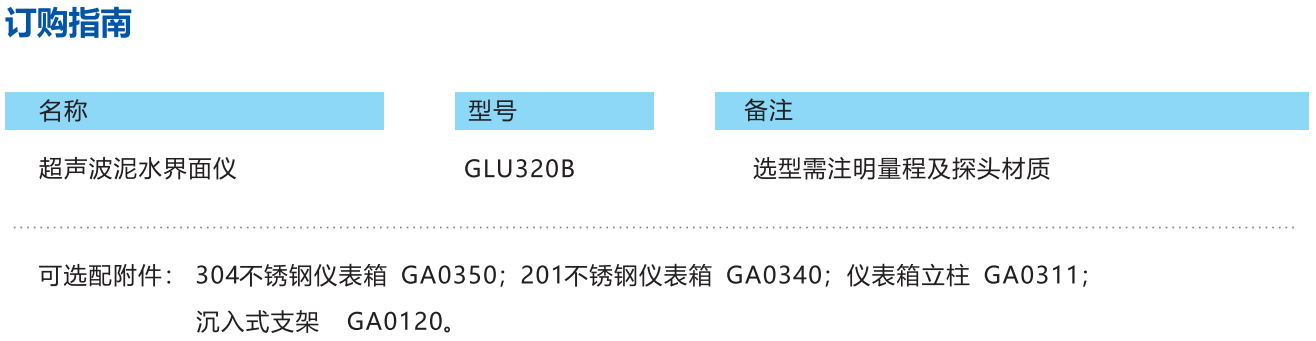 產品簡介: 超聲波泥水界面儀GLU320B的功能特點有:測量準確、抗干擾能力強;全中文菜單、操作方便;儀表整體小巧、簡潔美觀;儀表調試有簡易模式和專家模式;探頭防護等級IP68可用于惡劣環境
