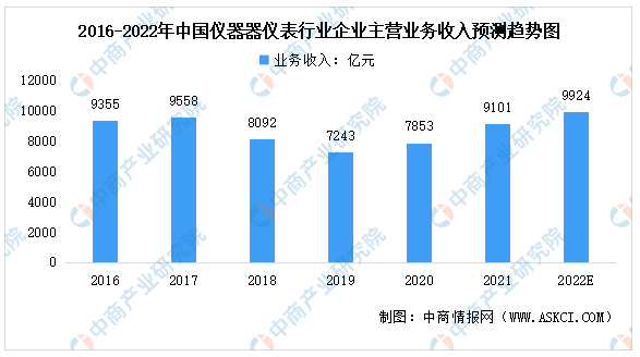 隨著節能降耗、低碳經濟、民生產業、戰略性新興產業的持續發展以及國家對食品安全和環境保護的重視程度加大,為我國儀器儀表行業帶來了新的機遇。中商產業研究院預測,2022年我國儀器儀表行業企業主營業務收入將達9924億元。