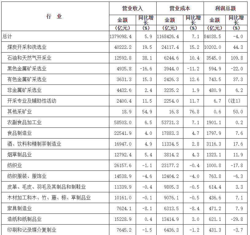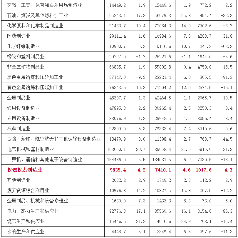 1.石油和天然氣開采業利潤總額比上年增長1.10倍,電力、熱力生產和供應業增長86.3%,煤炭開采和洗選業增長44.3%,電氣機械和器材制造業增長31.2%,專用設備制造業增長3.4%,汽車制造業增長0.6%。